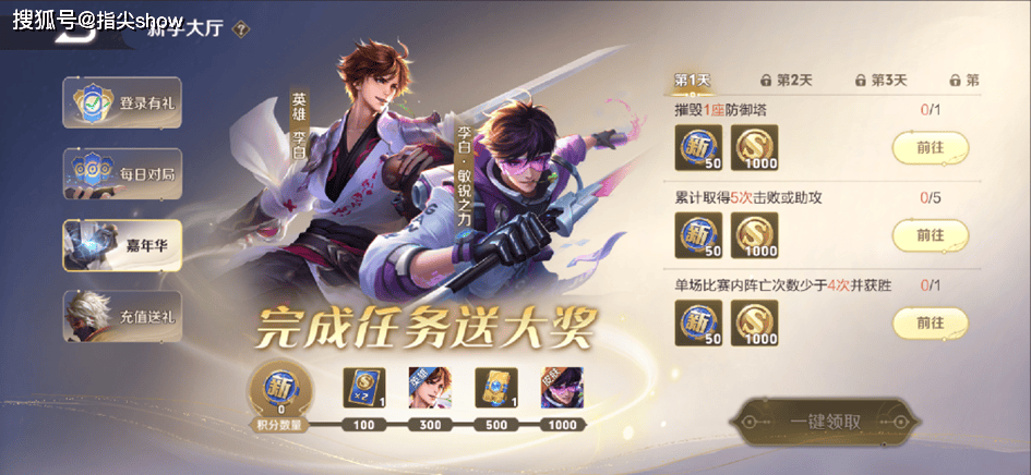这个主要是针对新手玩家,或者新建号的玩家,原本的新手任务,将升级成【嘉年华】活动,玩家每日完成对应的任务,即可获取嘉年华的积分。